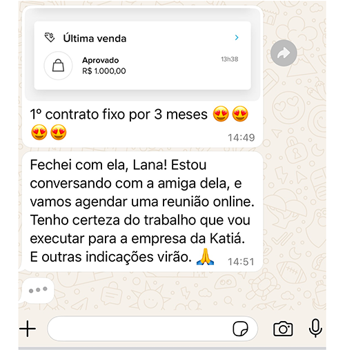 O método foi criado pra você ter resultados o mais rápido possível. Tanto que existe o Desafio Primeira Venda em 7 Dias, onde eu te acompanho pra você aplicar e conquistar seu primeiro cliente já na primeira semana que estiver aplicando.