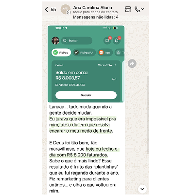 Claro que cada pessoa tem seu ritmo, mas se você aplicar o que ensino, pode sim ver dinheiro na conta em poucos dias.
