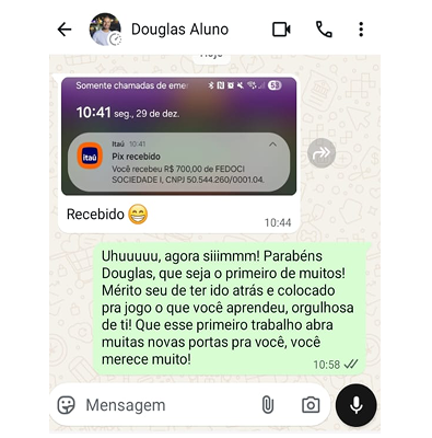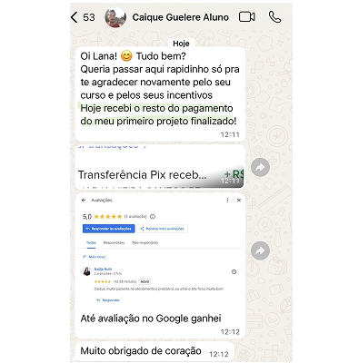 Eu ensino tudo do zero, abro a tela do meu computador e mostro como executar cada serviço, como vender e como entregar de forma profissional.